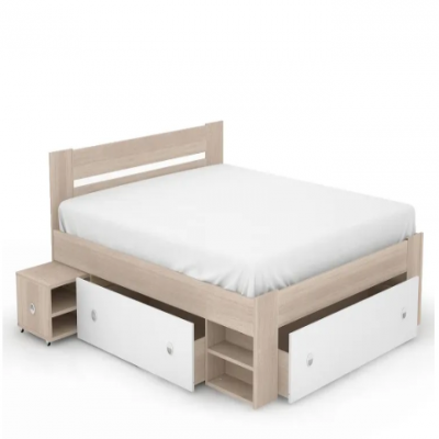 Двуспальная кровать Beneli СТЕЛЛА, с ящиком для белья, Дуб сонома/Белый, 160х200 см, 1 шт.